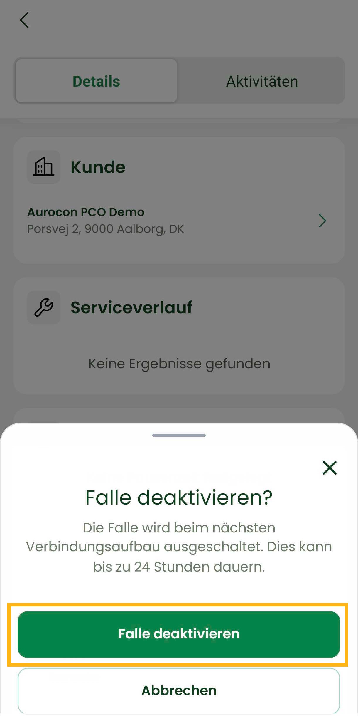 Das Deaktivieren einer Falle ist sinnvoll, wenn der Schlagmechanismus vorübergehend pausiert werden soll. Dies ist relevant, wenn eine Falle zu einem neuen Kunden oder Standort versetzt wird oder saisonal außer Betrieb genommen wird.
